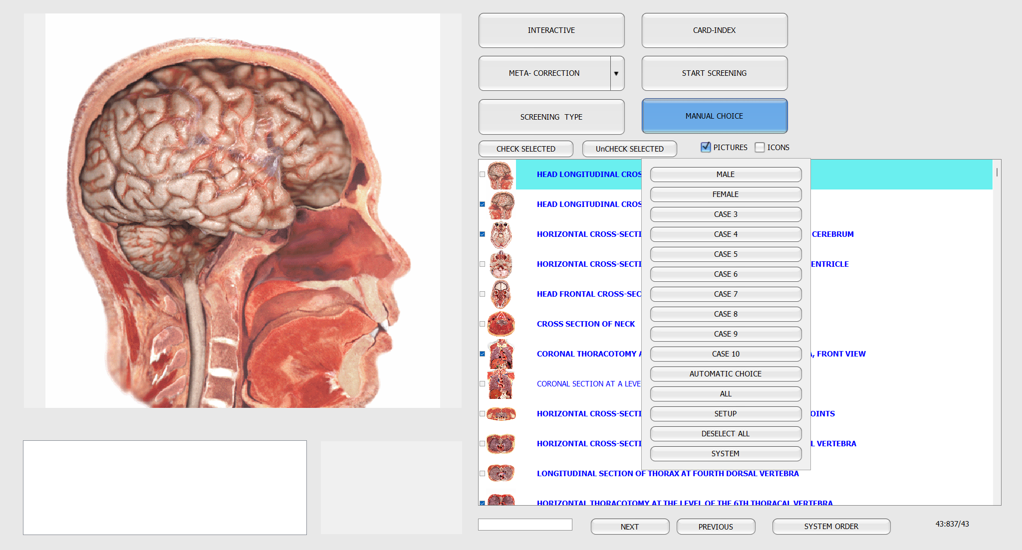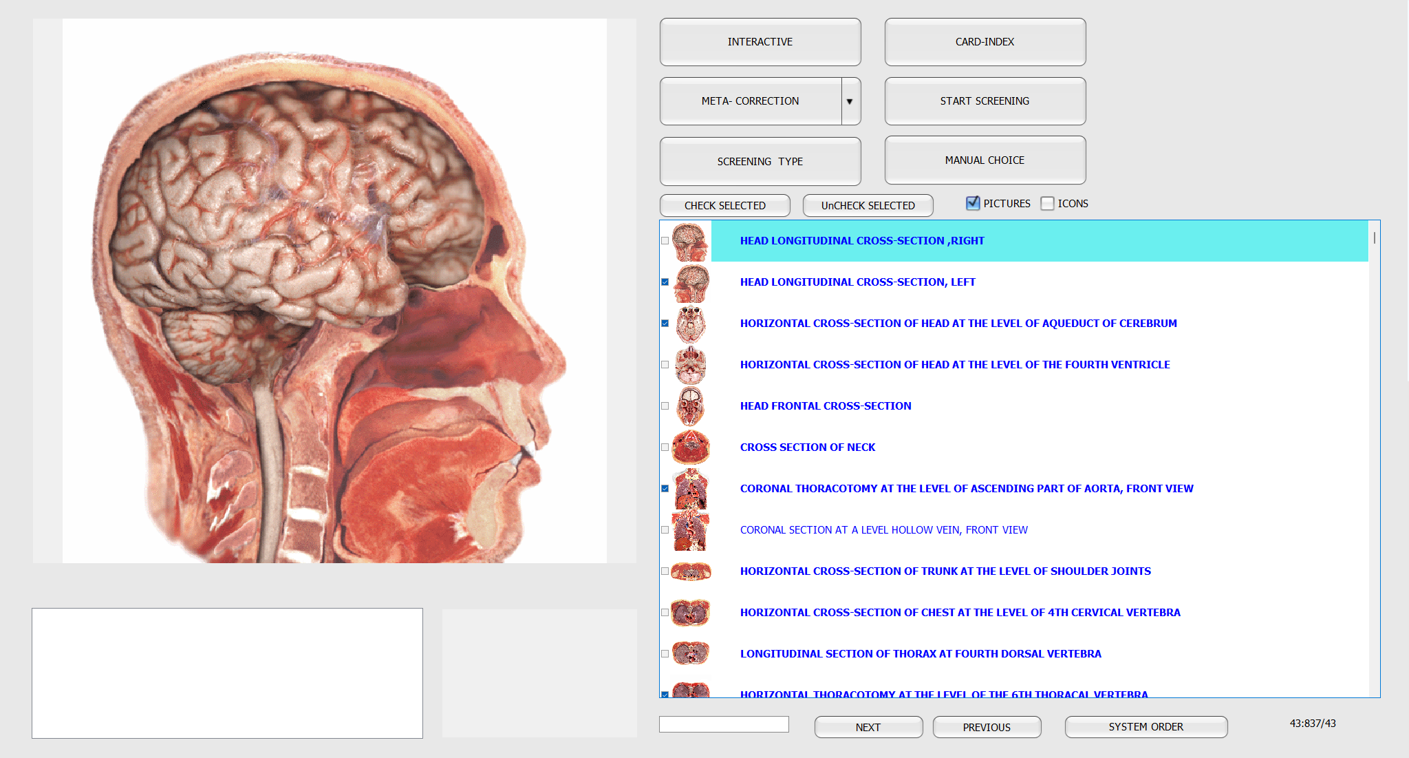 The brain will receive a signal regarding the need to test one or more organs of the body, which signal is displayed on the computer monitor and is captured in the headphones of subject. The signal represents a series of electromagnetic oscillations characteristic of healthy organs. Every human body possesses its own particular spectrum of electromagnetic oscillations. The question regarding the state of the health can be explored, and in response to a question, the subject’s brain provides an answer, which is then perceived by the sensors. The outcome represents the state of the body organism.