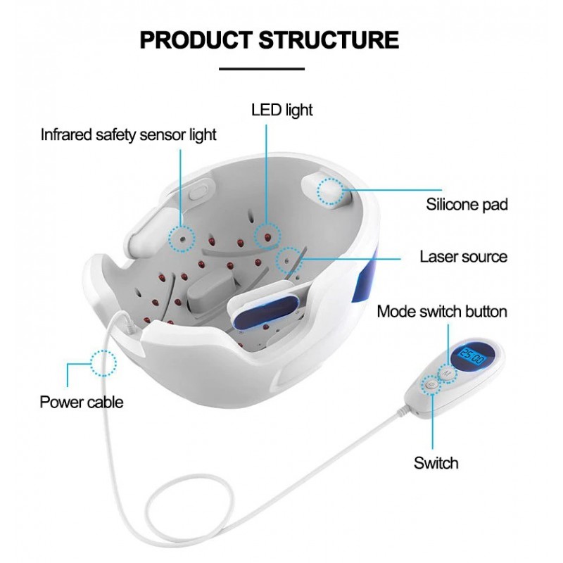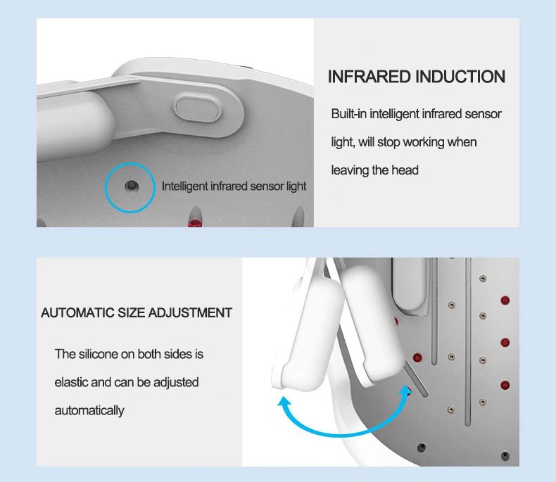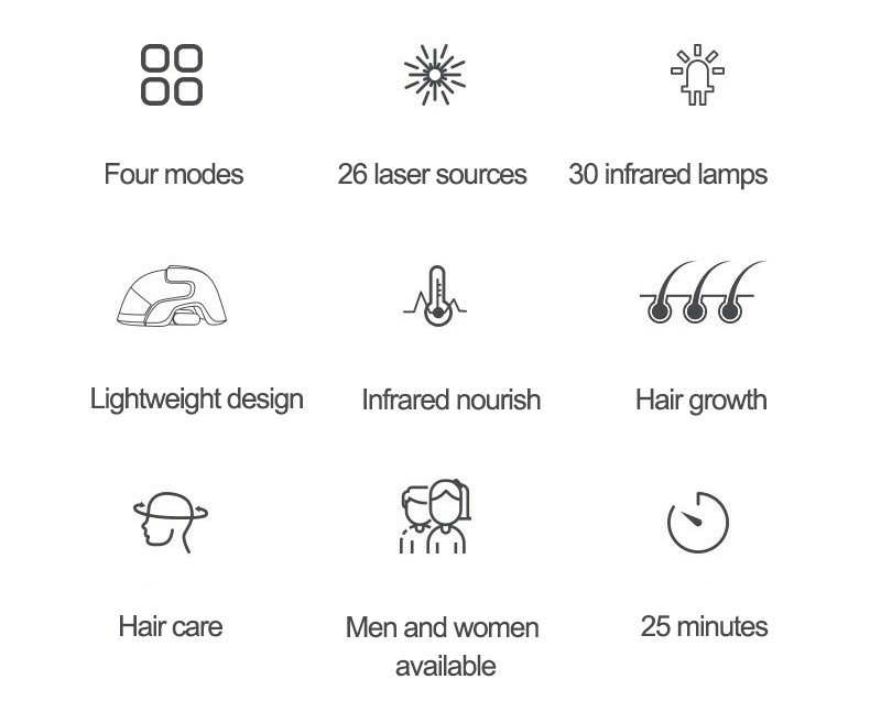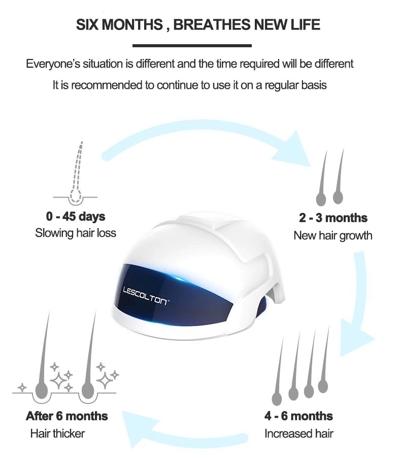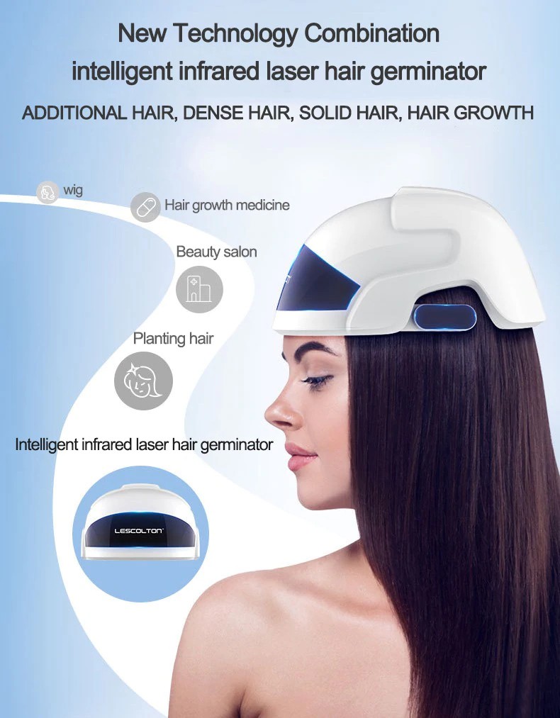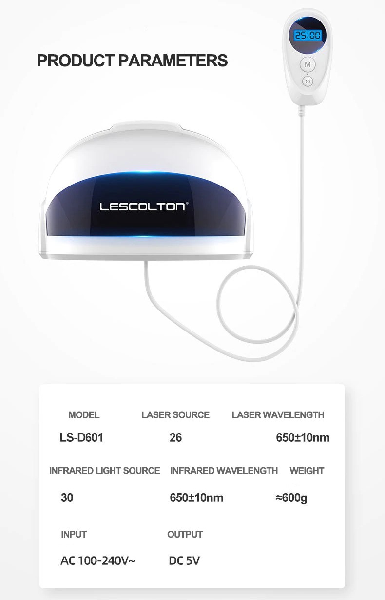 LESCOLTON hair growth device is a laser hair-enhanced product with functions such as oil control, hair loss, hair growth and hair growth, built-in 26 lasers and 30 LEDs.Laser plus infrared dual high-tech, infrared light energy, laser penetration, can maximize the activation of hair follicle function in the scalp, long-term use, can make hair regeneration.Lightweight ergonomic design makes it more comfortable to wear; upgrades four modes to choose the mode that suits you; built-in intelligent infrared sensor light, the product will stop working when it is not worn on the head.