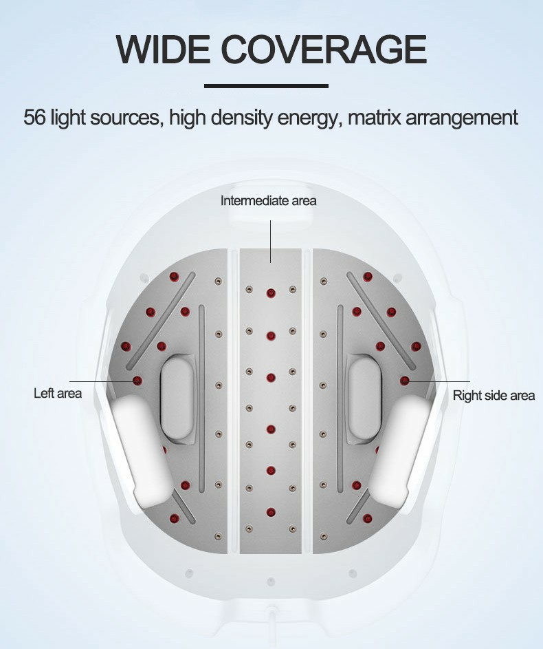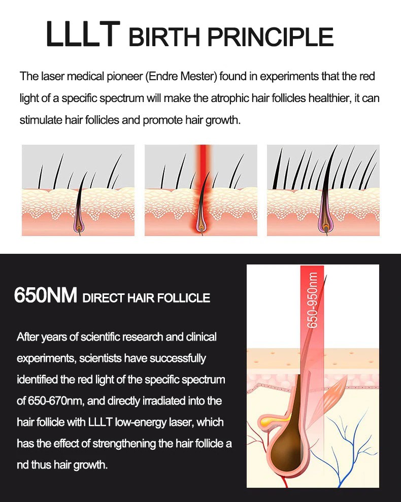 Irradiation time: 20 minutes,2 times/per week Tissue absorption of laser energy = irradiation power * irradiation time.For the LPT laser power, the appropriate exposure time is critical. 20 minutes is the suitable time to activate the hair follicle. 1.4-18 weeks of oil secretion improved, and hair loss will be back to normal level. 2.8-26 weeks, hair thicker , more comprehensive (full), more shiny (healthy) 3.26-52 weeks, the hair comes into the full growth period, and hair volume increased significantly.